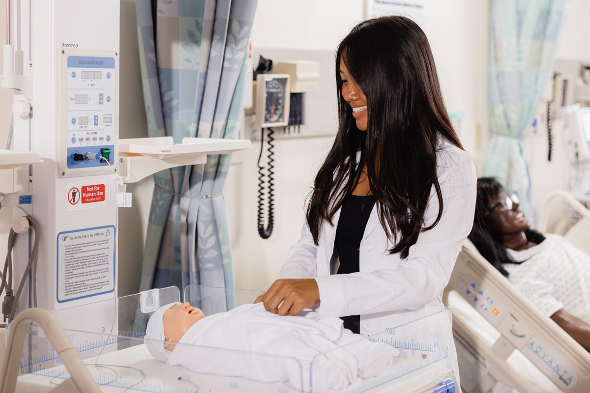These state-of-the-art machines further The School of Nursing’s ability to deliver high quality nursing education through simulation lab experiences and are instrumental in teaching comprehensive physical assessments, essential critical skills, and the early recognition of pediatric patient deterioration. By simulating realistic scenarios, they help students develop critical thinking and decision-making skills, preparing them to deliver safe, effective care in real-world clinical settings. Their introduction represents a significant advancement in nursing curriculum, supporting hands-on learning and critical growth.